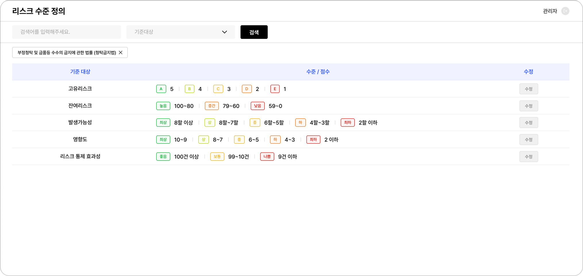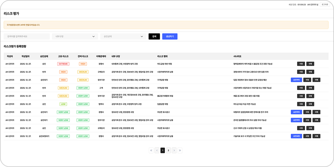 정기적인 리스크 평가를 통해 변화하는 사업환경과 법규 개정사항을 반영하고,